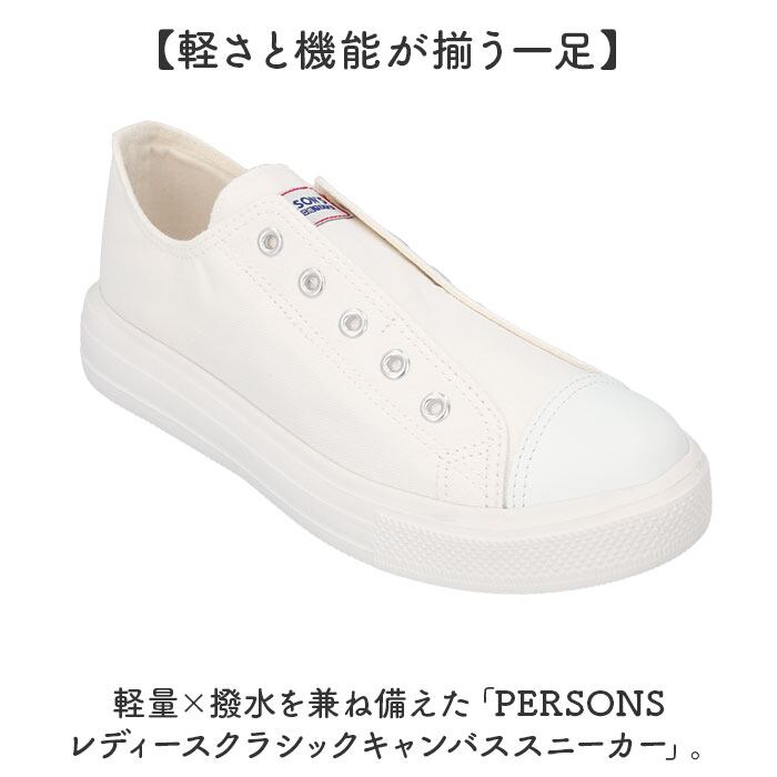 ・軽量×撥水を兼ね備えた「PERSONS レディースクラシックキャンバススニーカー」。