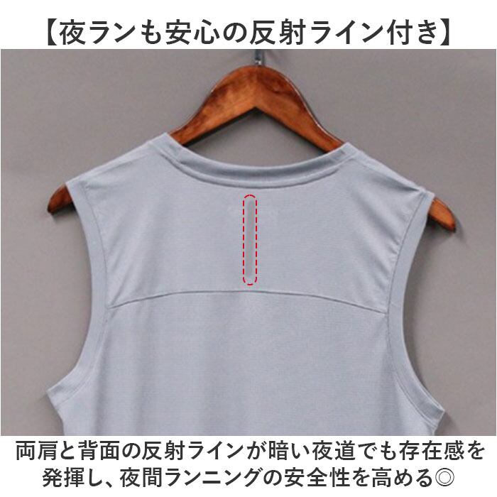 ・両肩と背面の反射ラインが暗い夜道でも存在感を発揮し、夜間ランニングの安全性を高める◎