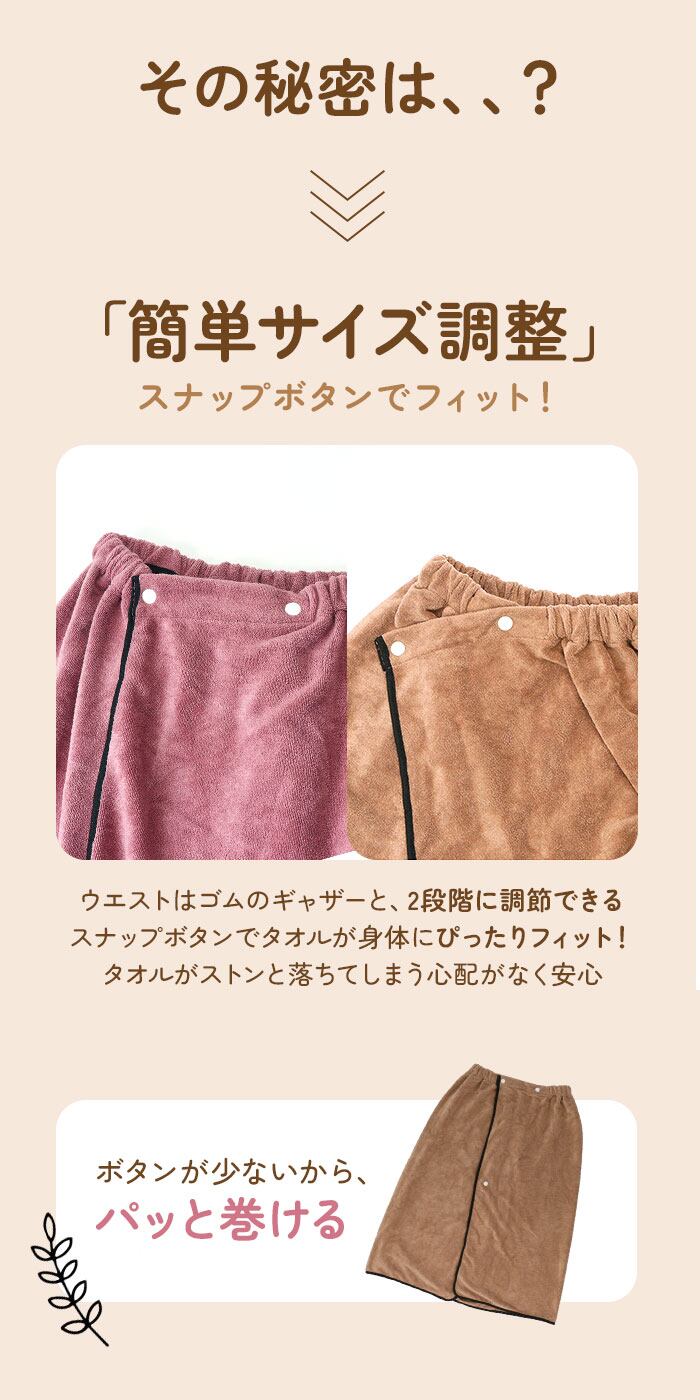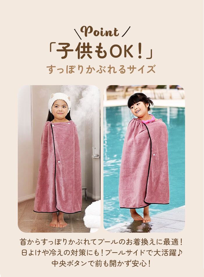 ・ボタン付きだから巻いたままずり落ちにくく、プールや海での着替えもスムーズに叶う◎