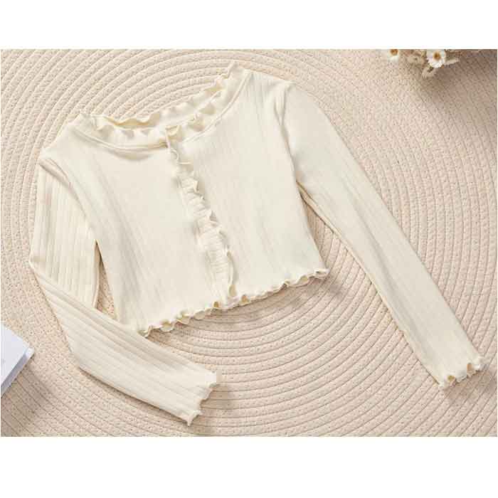 ・防寒もスタイルも叶える、キッズ向けバレエトップスニット。
