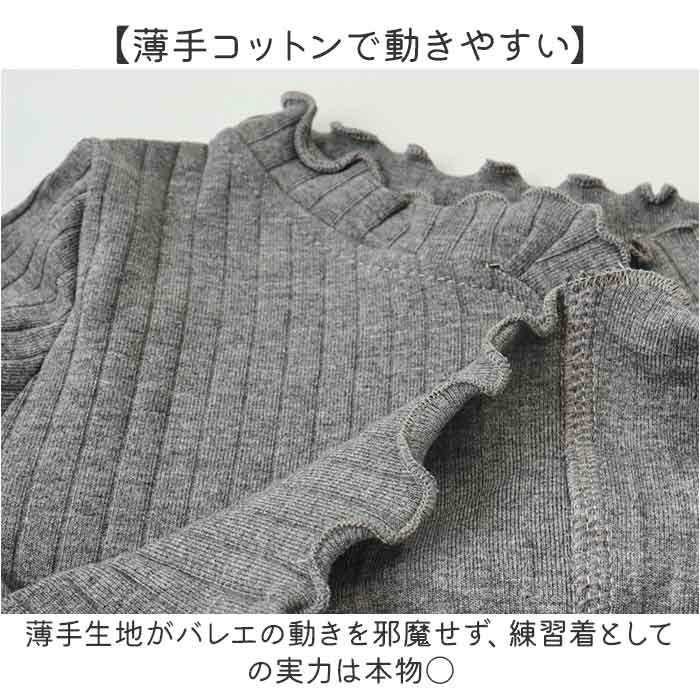 ・薄手生地がバレエの動きを邪魔せず、練習着としての実力は本物〇