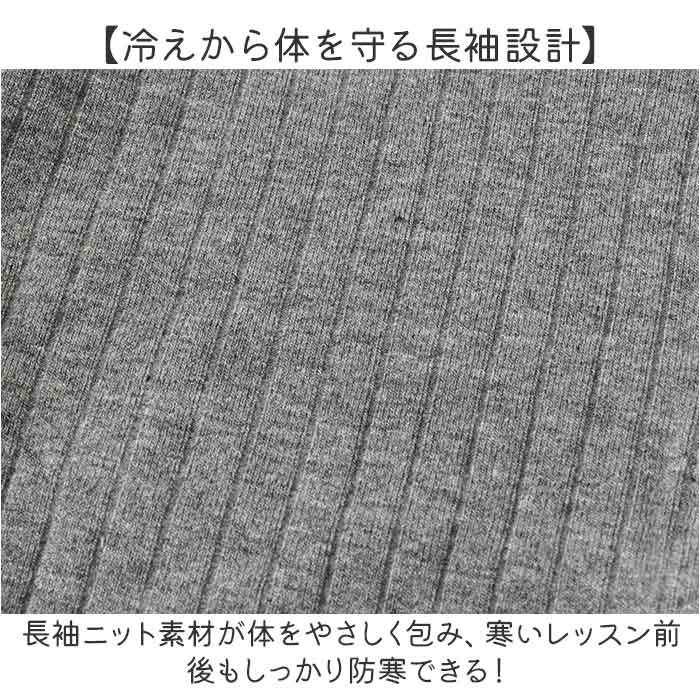 ・長袖ニット素材が体をやさしく包み、寒いレッスン前後もしっかり防寒できる!