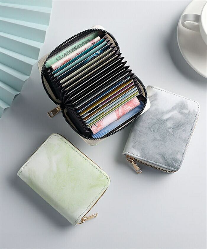 ・マーブル模様が上品に映えるコンパクトなカードケース。