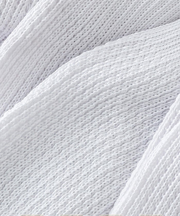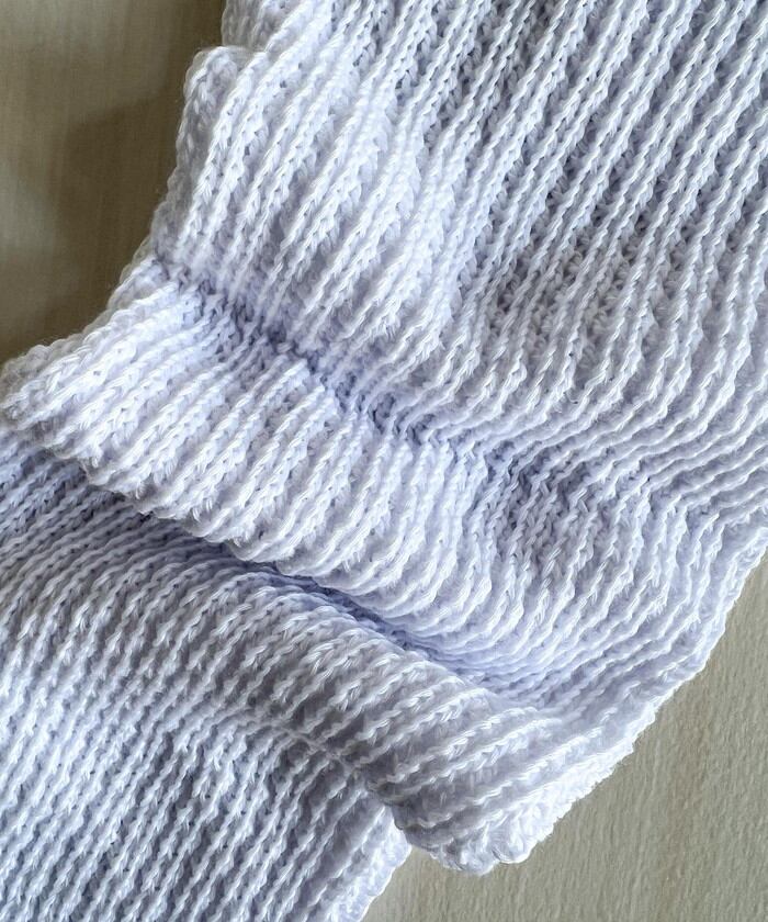 ・伸びの良いリブ編みがふんわりと重なり、脚を細見せしながら存在感たっぷりのシルエットを演出。