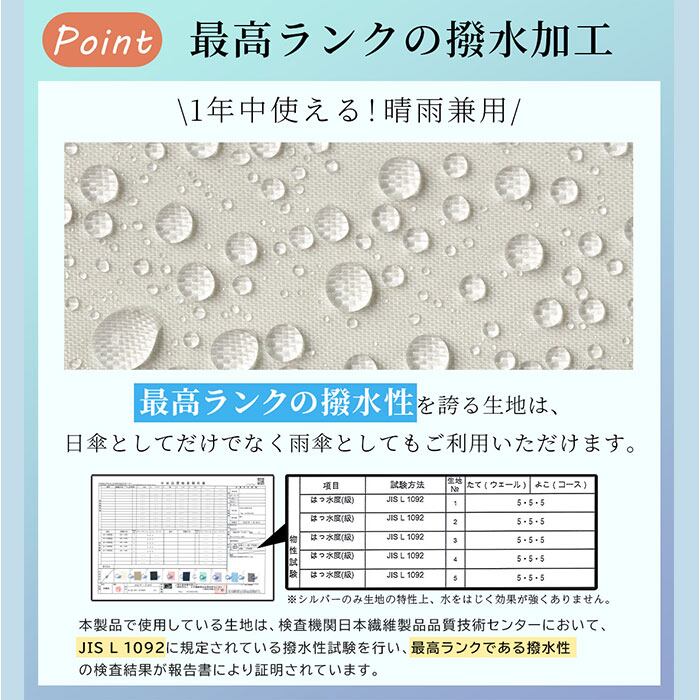 ・遮光率・UVカット率ともに100%を誇る完全遮光仕様で、頼れる晴雨兼用の傘◎