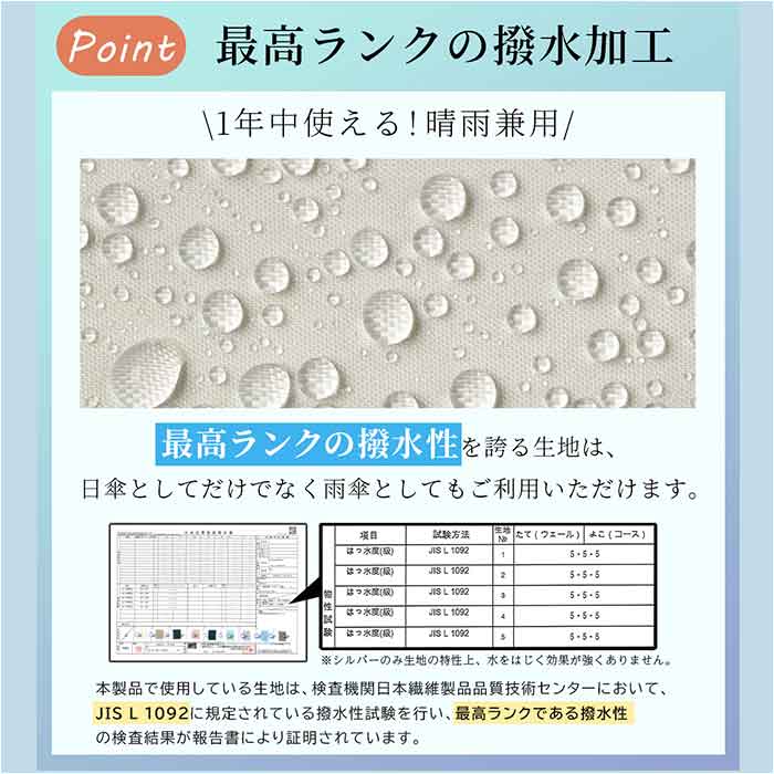 ・最高ランクの撥水ポリエステル生地で、UV対策にも梅雨対策にも使えるオールシーズン仕様◎
