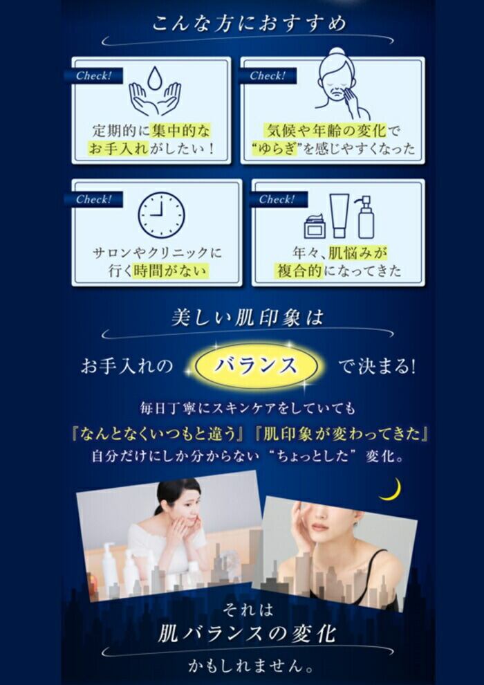 ・厳選した美容成分が配合され、心地よい使用感と共に、日常のお手入れに特別感をプラス。肌にフィットするシートは、サロン帰りのようなリラックスした時間を演出します。