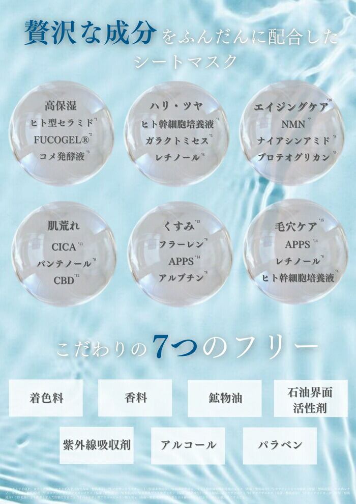 ・このシートマスクは、日々のスキンケアの一環として、肌のうるおい感を高め、なめらかな肌触りをサポートします。