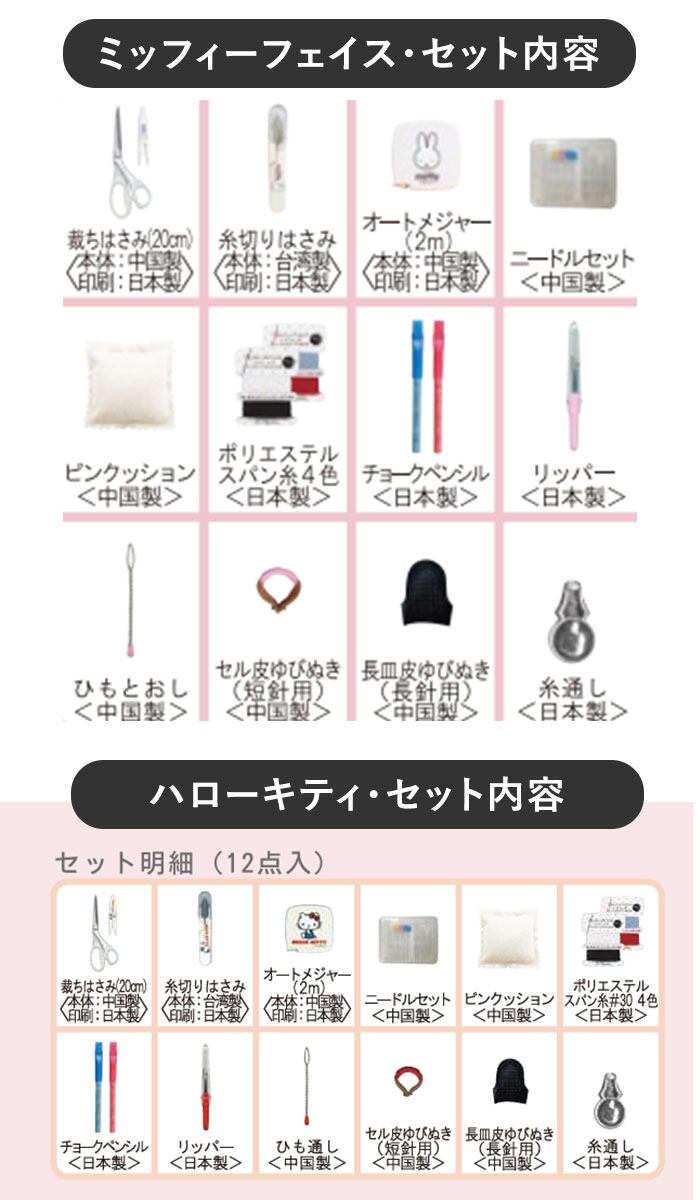 ・新学期に重宝する定番9点セットに加え、ひも通し、長皿皮ゆびぬき、糸通しをプラスしてさらにセットが充実!ミッフィーフェイスなど、可愛くて便利な12点セットも仲間入り。