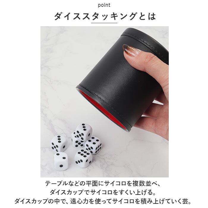 ダイスカップ&サイコロ12個セット 通販 ダイススタッキング ダイス積み サイコロカップ カジノ ゲーム カップ コップ ダイス サイコロ ジャグリング 大道芸 合皮 革 かわ テーブルゲーム パフォーマー パフォーマンス おしゃれ オシャレ 飲み会 パーティー かくし芸 隠し芸