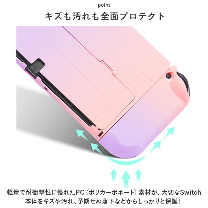 ・軽量で耐衝撃性に優れたPC(ポリカーボネート)素材が、大切なSwitch本体をキズや汚れ、予期せぬ落下などからしっかりと保護!