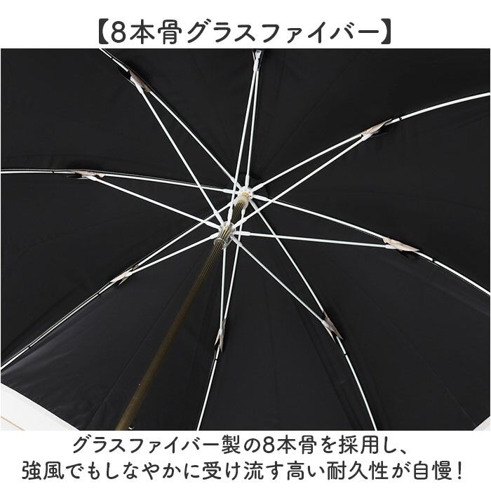 ・グラスファイバー製の8本骨を採用し、強風でもしなやかに受け流す高い耐久性が自慢!