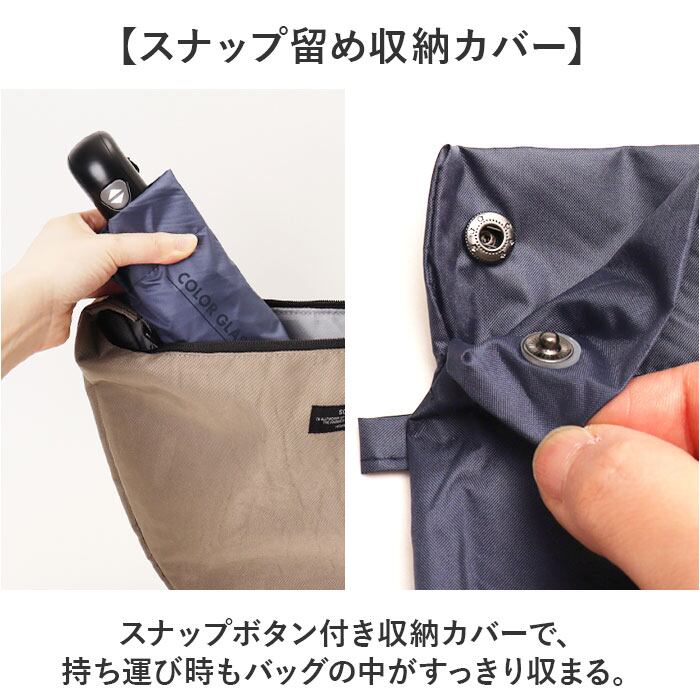 ・スナップボタン付き収納カバーで、持ち運び時もバッグの中がすっきり収まる。
