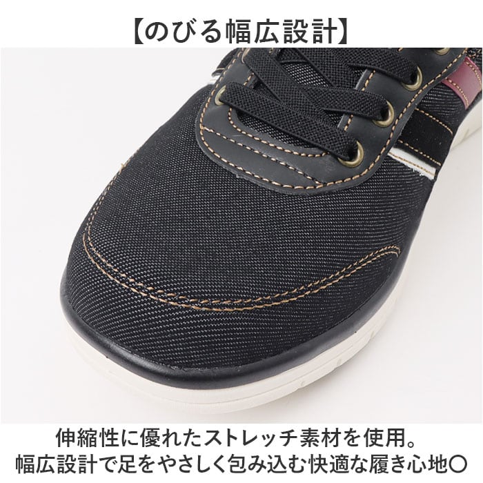 ・伸縮性に優れたストレッチ素材を使用。幅広設計で足をやさしく包み込む快適な履き心地〇