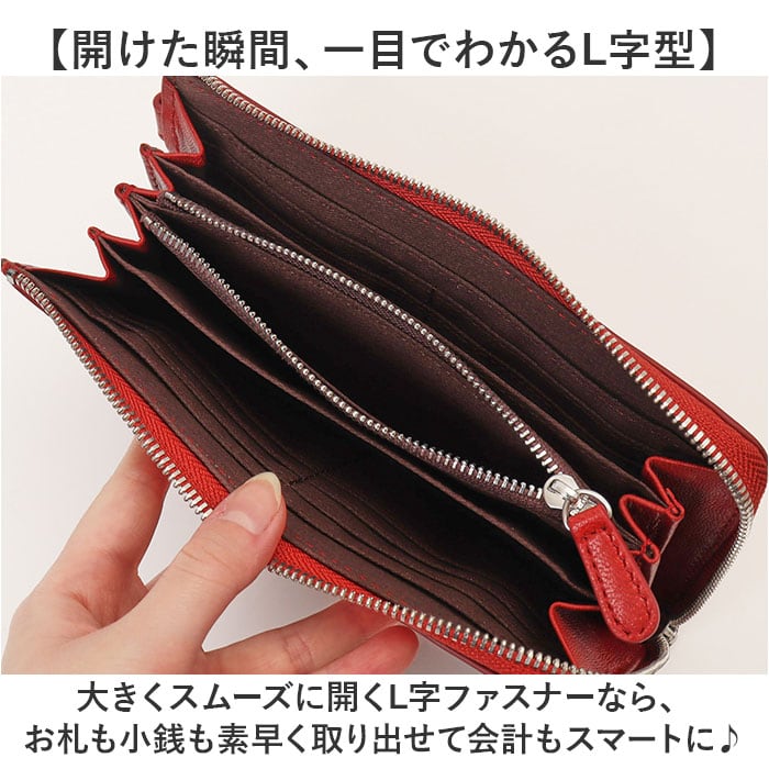 ・大きくスムーズに開くL字ファスナーなら、お札も小銭も素早く取り出せて会計もスマートに♪