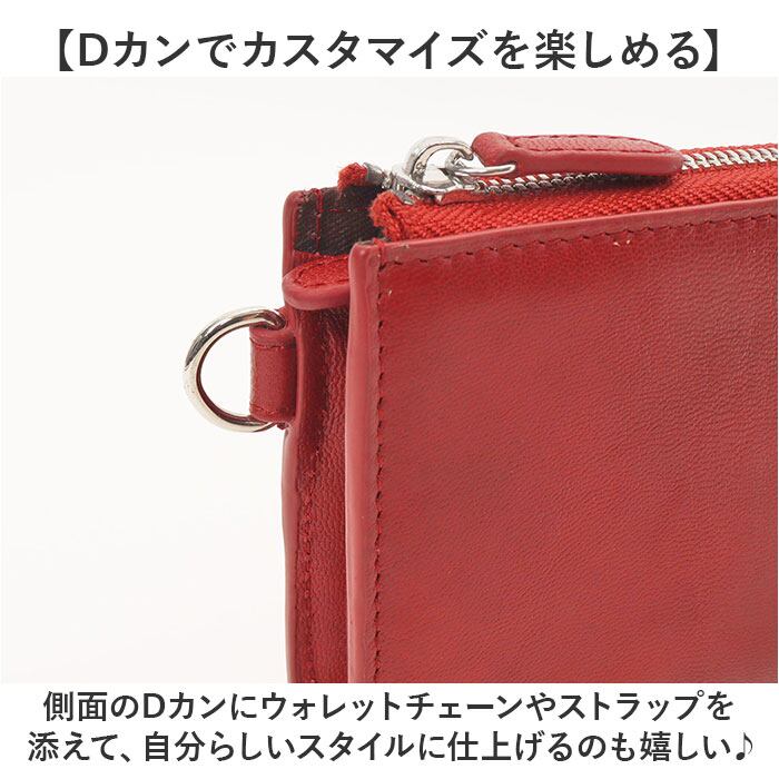 ・側面のDカンにウォレットチェーンやストラップを添えて、自分らしいスタイルに仕上げるのも嬉しい♪