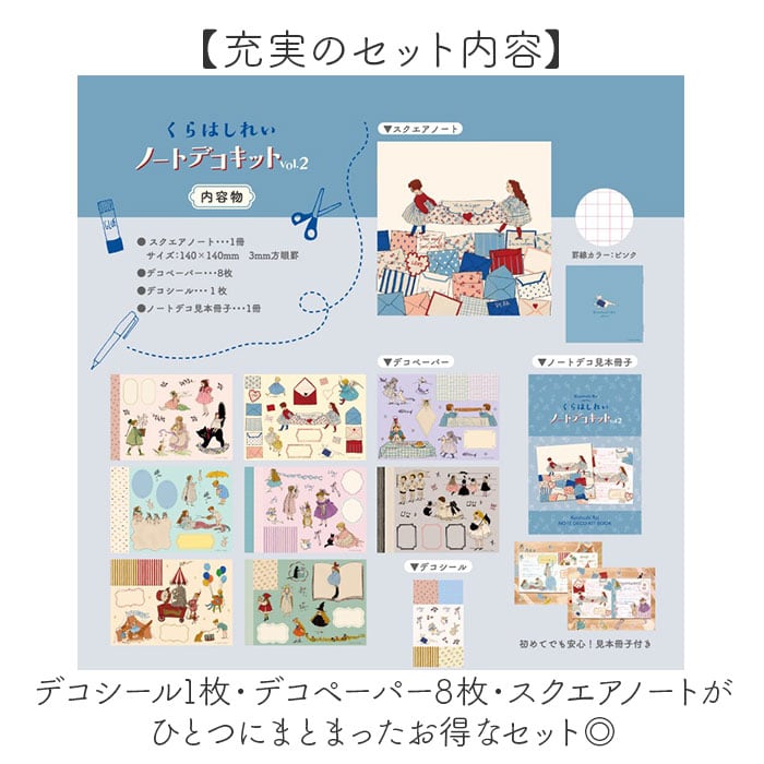・デコシール1枚・デコペーパー8枚・スクエアノートがひとつにまとまったお得なセット◎