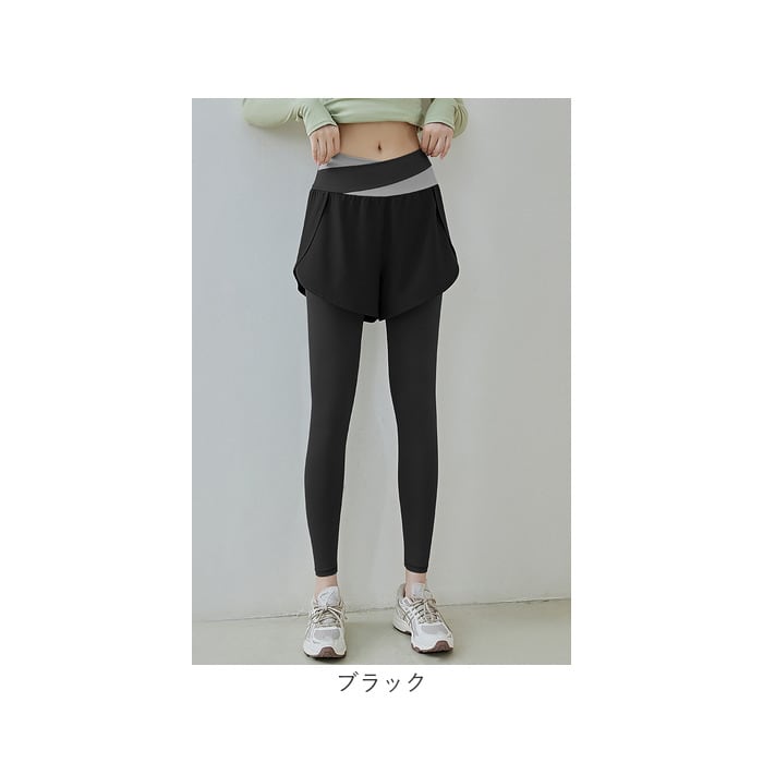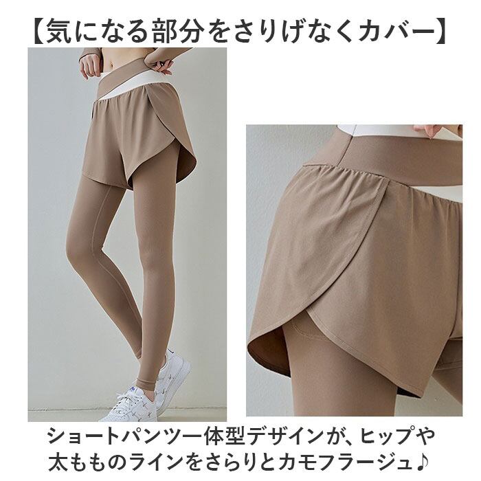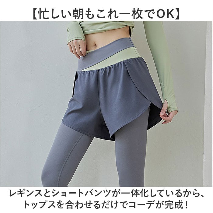 ・レギンスとショートパンツが一体化しているから、トップスを合わせるだけでコーデが完成!
