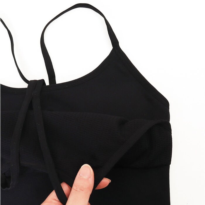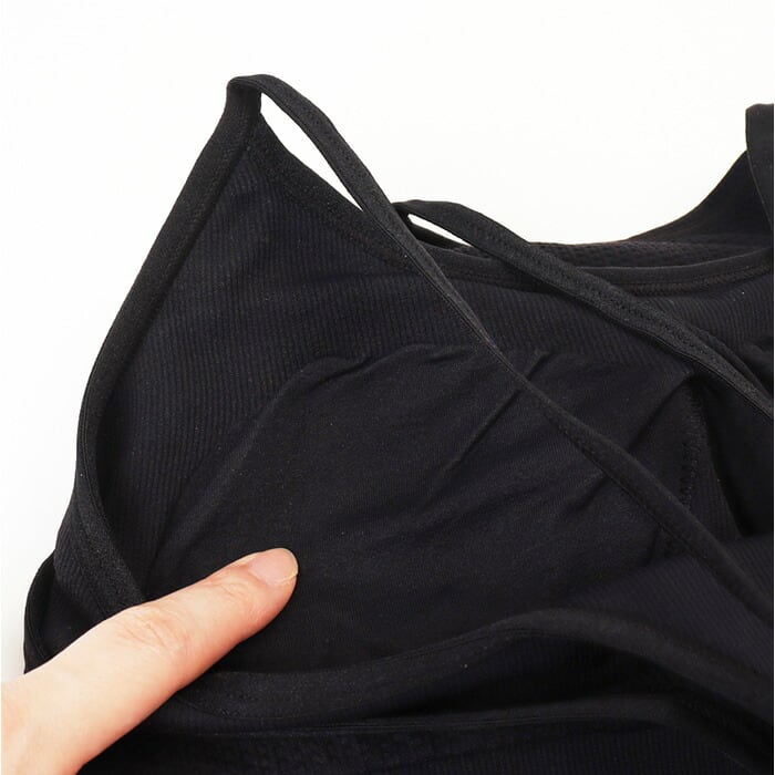 ・フロント二重構造が胸元をしっかりカバー。運動中も安心感をキープできる設計が頼もしい。
