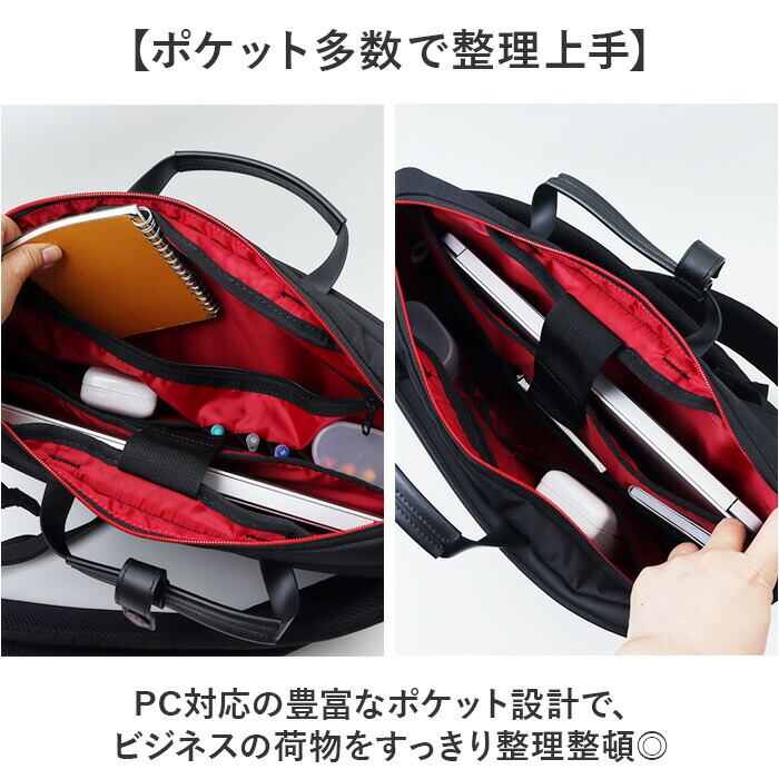 ・PC対応の豊富なポケット設計で、ビジネスの荷物をすっきり整理整頓。