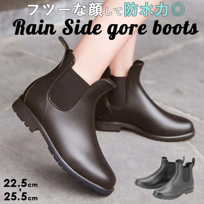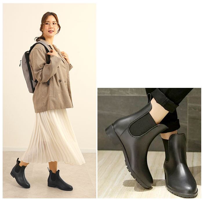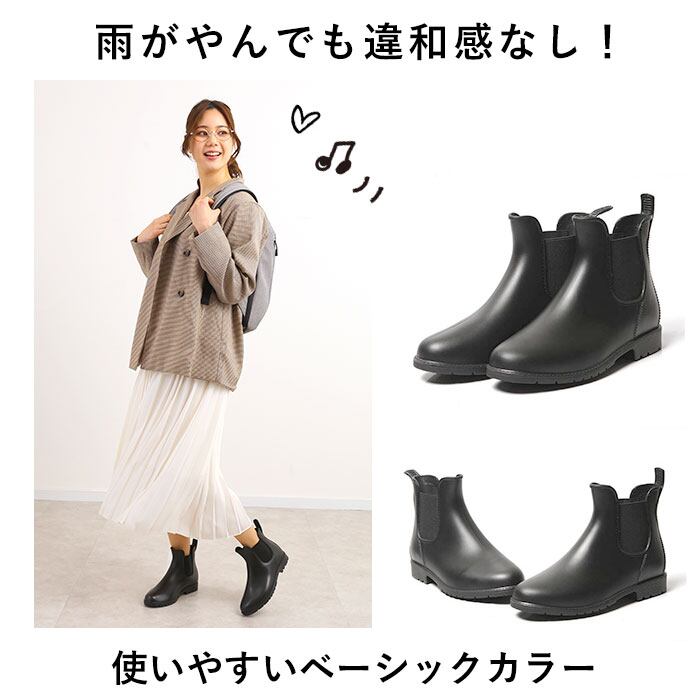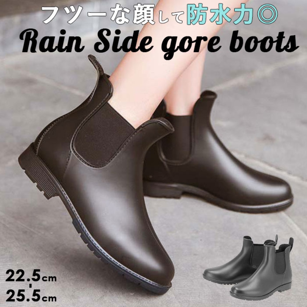 ・色々なスタイルに合わせやすい、シンプルなサイドゴアレインブーツ。