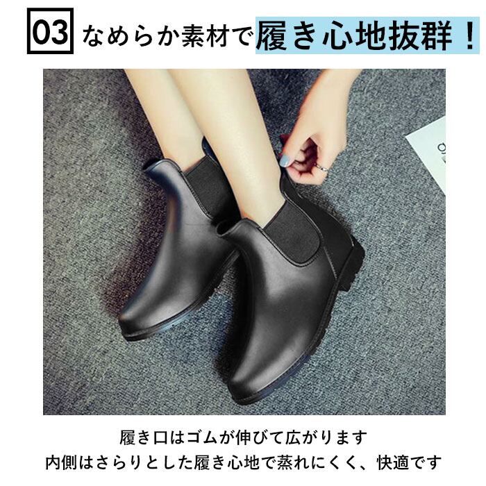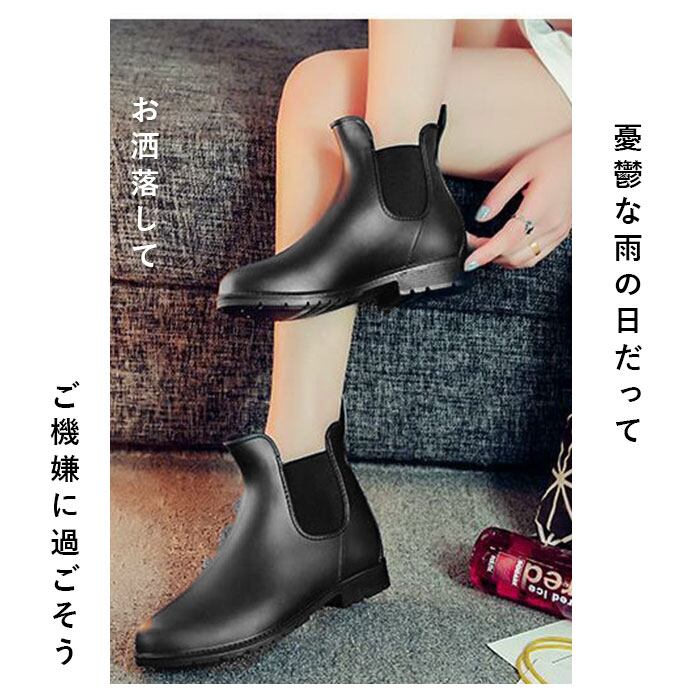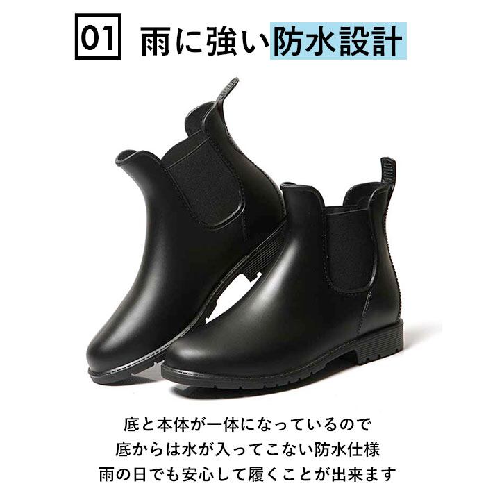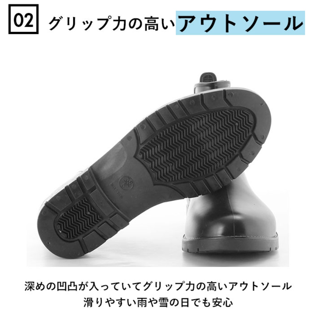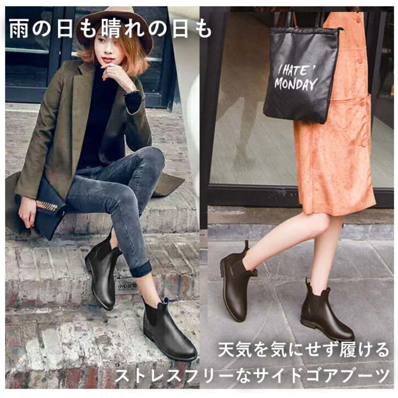 ・色々なスタイルに合わせやすい、シンプルなサイドゴアレインブーツ。