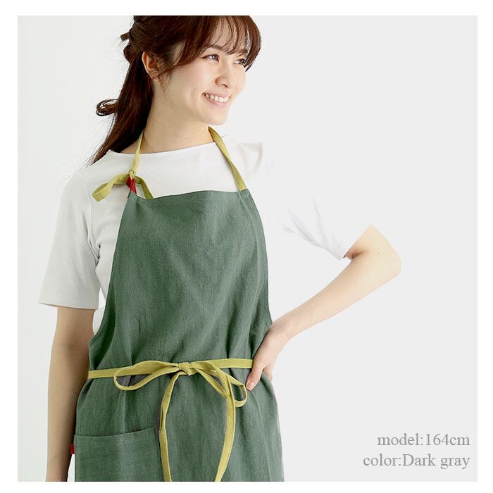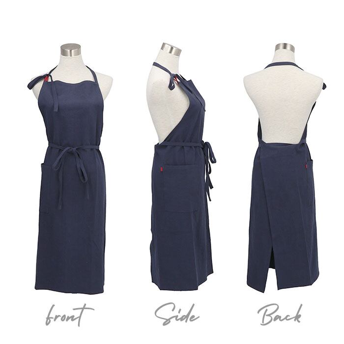・簡単装着できるホルターネック仕様でエプロンの紐は前結び。