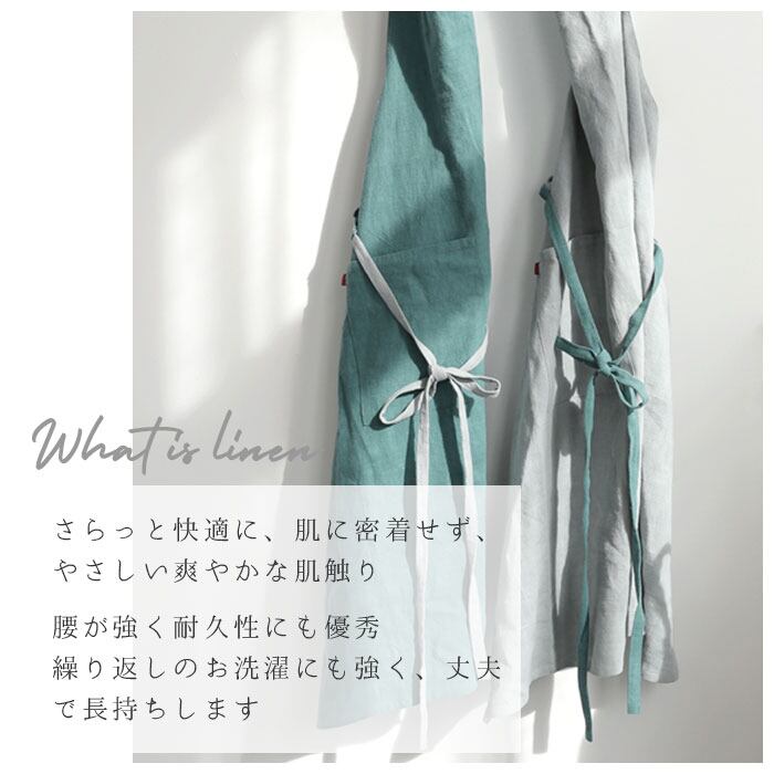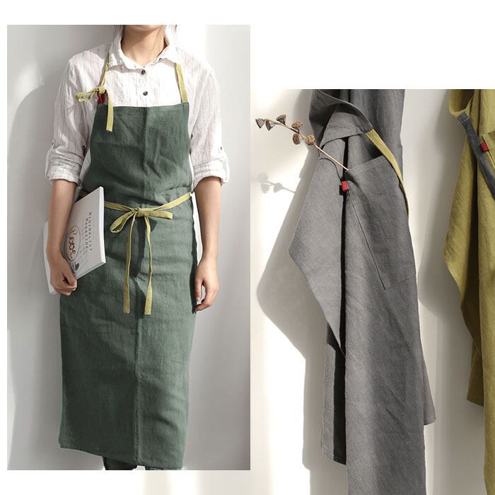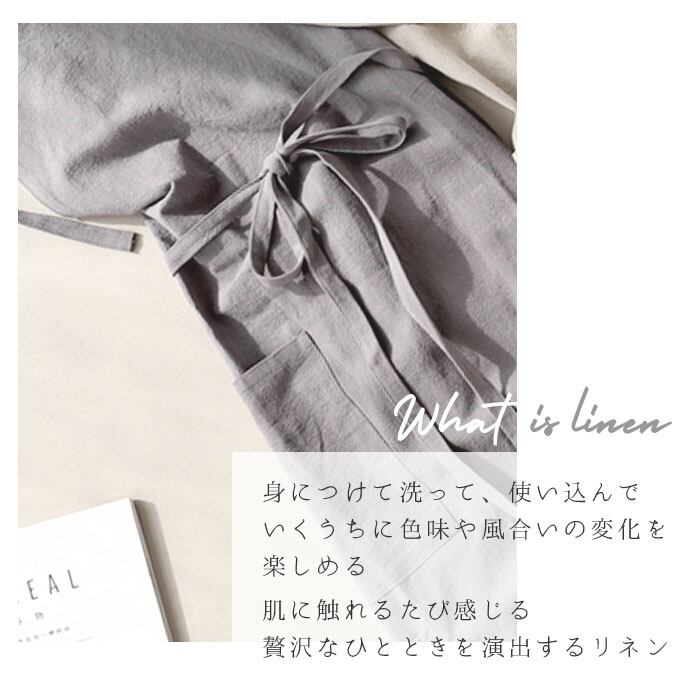・ワンピース丈の大人可愛いおしゃれなリネンのキッチンエプロンが登場。