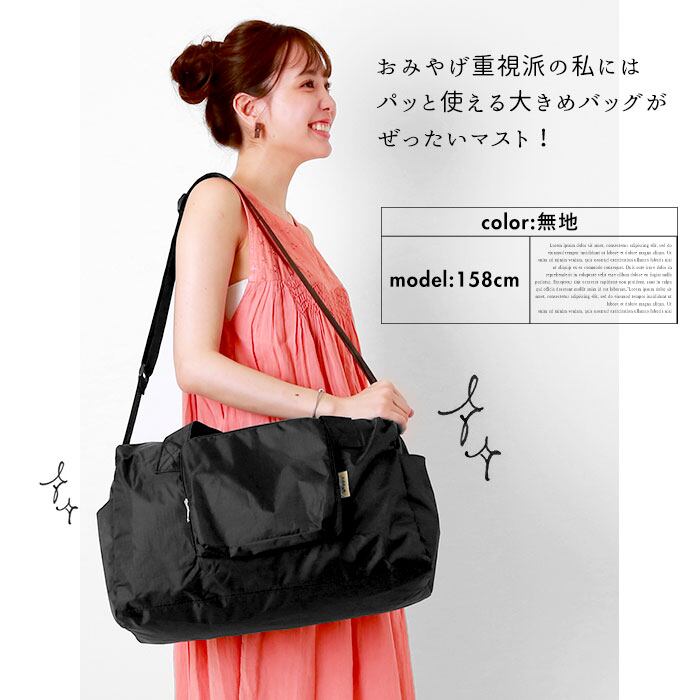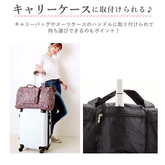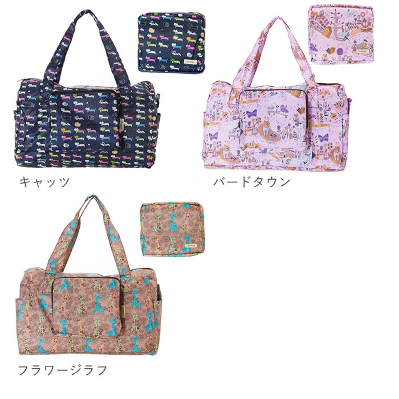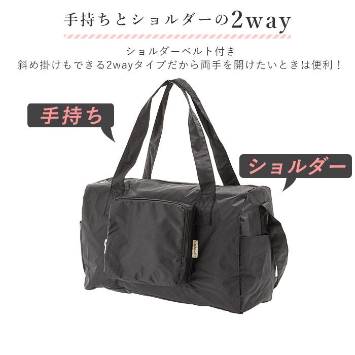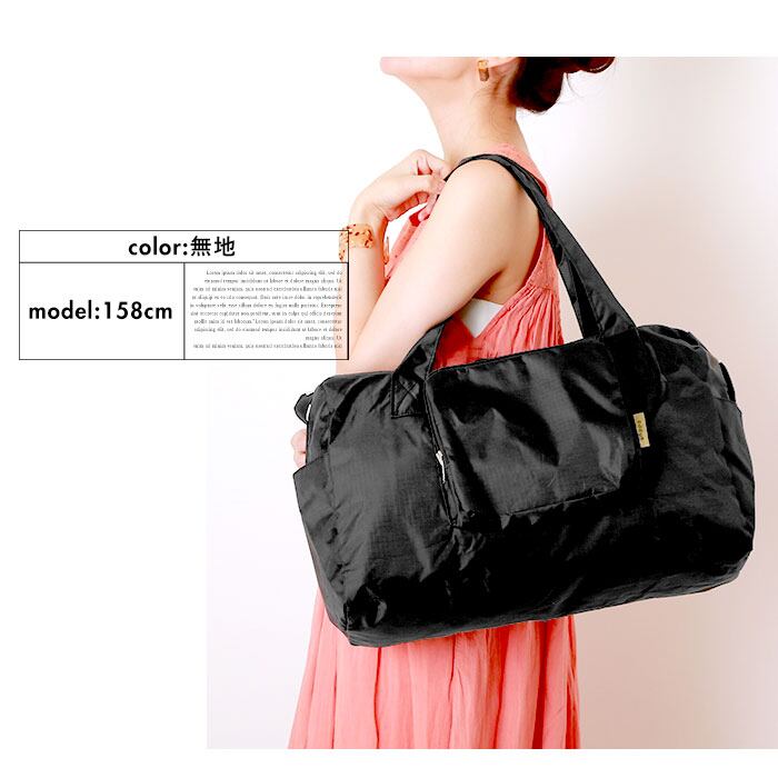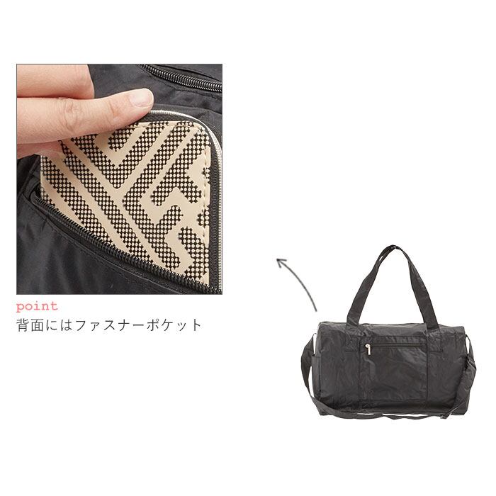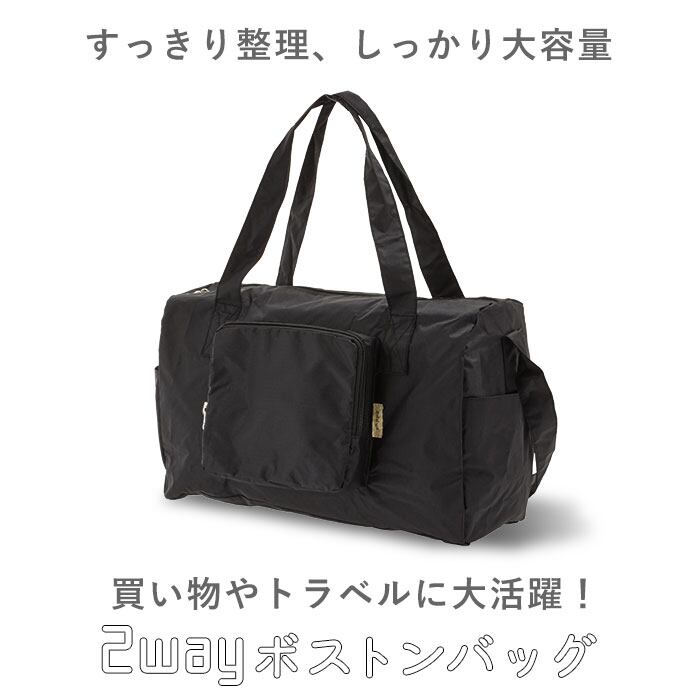 折りたたんでファスナーで収納でき、コンパクトに持ち運びできるボストンバッグです。旅行などに出かけて荷物が増えた時に、便利ですね。
