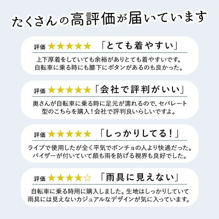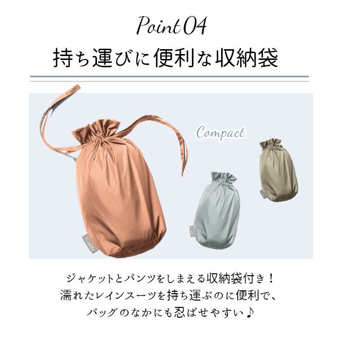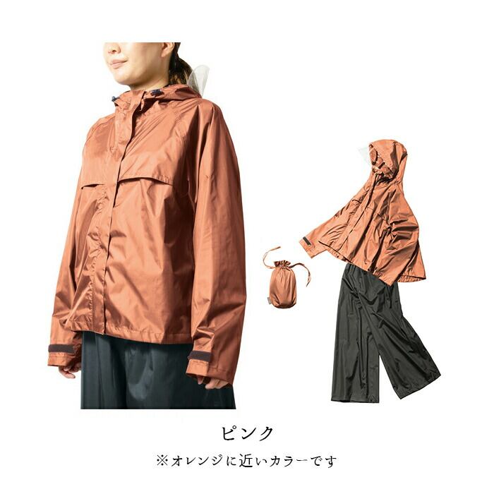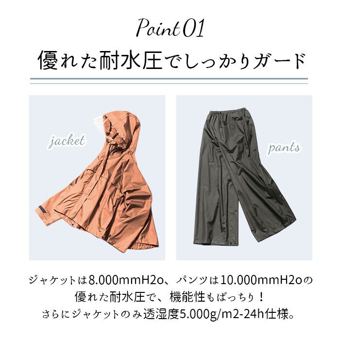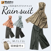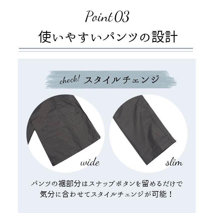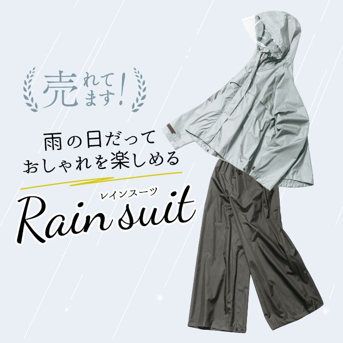 ・洋服の上からも着やすいワイドシルエットが魅力的な上下セットのレインスーツが新登場。