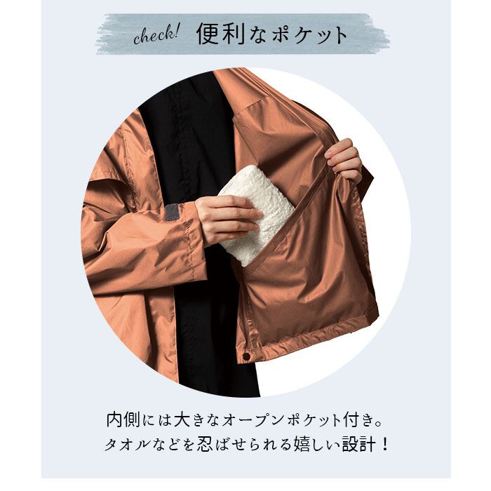 ・ジャケット内側にはオープンポケットが付いているからミニタオルをしのばせておくことができる。