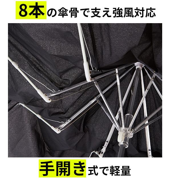 軽量なので持ち運びに便利!8本の傘骨で支え強風対応で丈夫な、手開き式の折りたたみ傘です。60cmと大きめサイズ。通勤に便利なメンズ雨傘です。