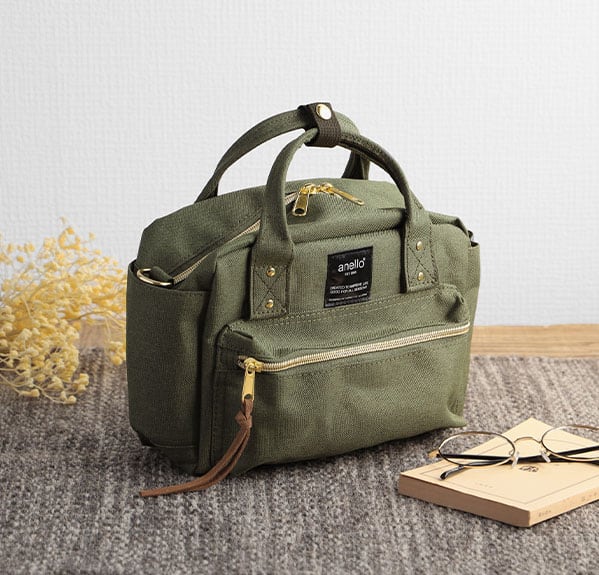 大人気の杢調ポリエステルキャンバスのスクエアリュックに、ミニボストン2WAYショルダーバッグが仲間入り♪取り外し、長さ調節可能なショルダーベルトは肩掛けや斜め掛けなど、自由自在にアレンジ!ポリキャンバス素材で汚れや水に強く、ミニサイズながら約10cmのマチで見た目以上に収納ができ、ころんとしたかわいいシルエットもポイントです♪