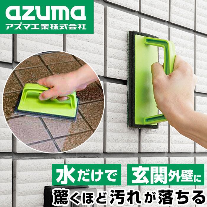 玄関掃除 アズマ AZ655 通販 玄関 タイル 掃除 ブラシ 外壁 コケ 除去 掃除グッズ スポンジ 持ち手 玄関タイル ベランダ お掃除 洗剤不要 掃除用品 大掃除 バルコニー 簡単 汚れ落とし ブラッシングスポンジ 柄付ブ