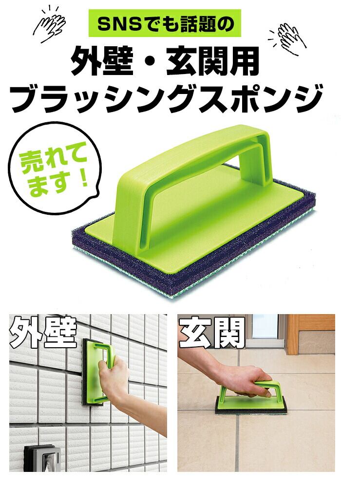 ・ゴシゴシ洗えて、洗剤いらず!水で濡らしてこするだけ!!外壁・玄関用ブラッシングスポンジ。