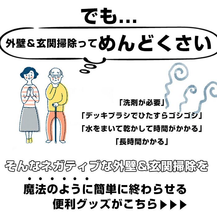・外壁・コンクリートの汚れ・コケ・鳥のフン落としに。玄関タイルの砂ボコリやドロ汚れ掃除にも大活躍!
