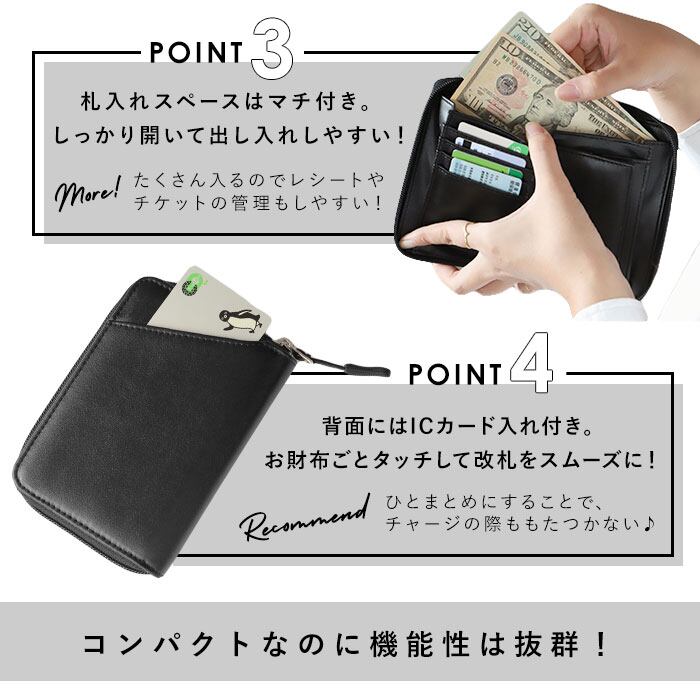 ・お財布外側、背面にはICカード用ポケット付きなので、改札口でお財布ごとタッチすれば、毎日の通勤がスムーズ。