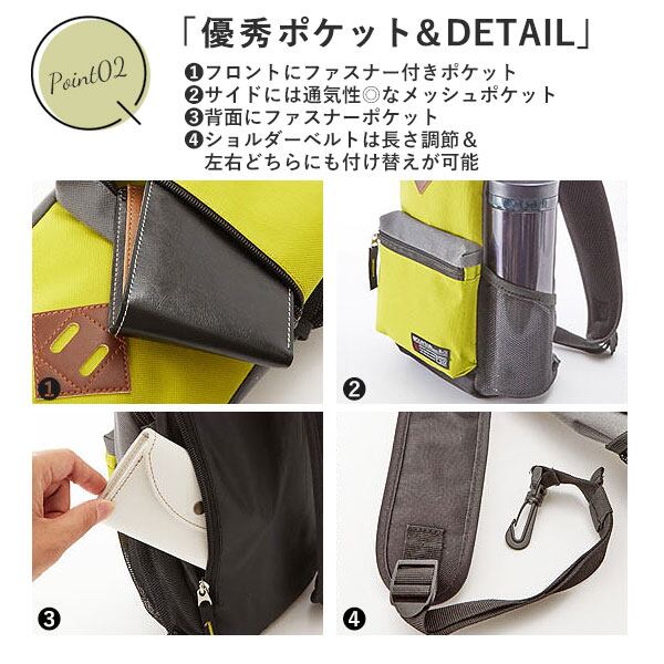 アウトドアやサイクリング、ウォーキングなど幅広く使えて、スタイリッシュで多種多様に使えるボディバッグです。程よい収納力で大人もお子様にも適しています。ショルダーベルトは長さ調節、左右どちらにも付け替えが可能です。利き手に合わせて背負えます。フロントポケット、背面ファスナーポケット付き。