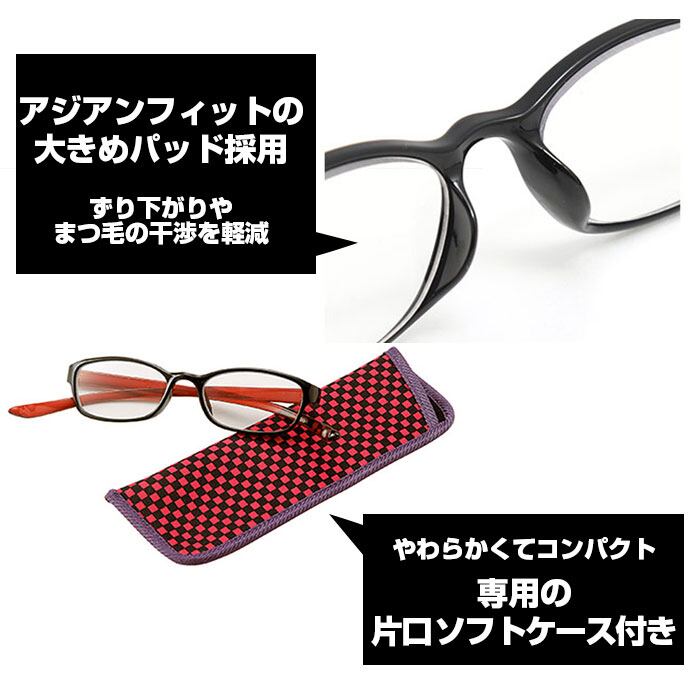 ※この商品は視力補正用の老線鏡です。手元の文字等を見やすくする事を目的に作られておりますので、メガネを掛けたまま歩いたり、車を運転しないで下さい。