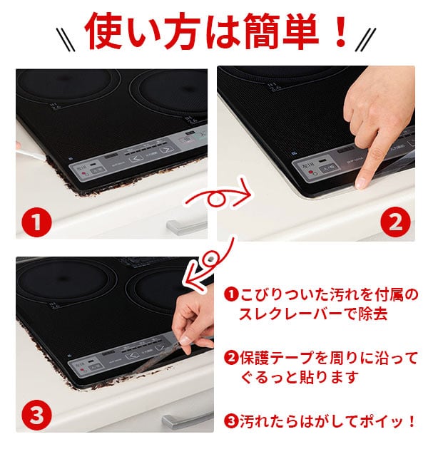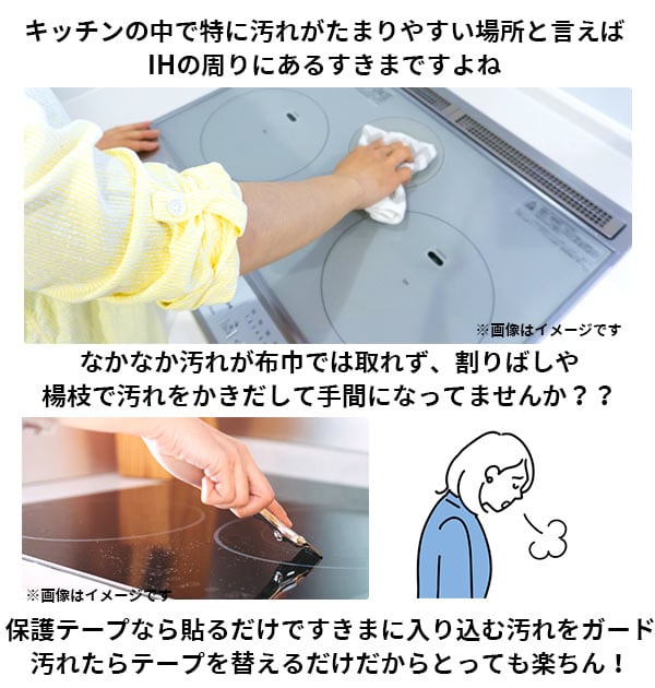 剥離氏をはがしIH調理器の周囲に貼っておくだけ。