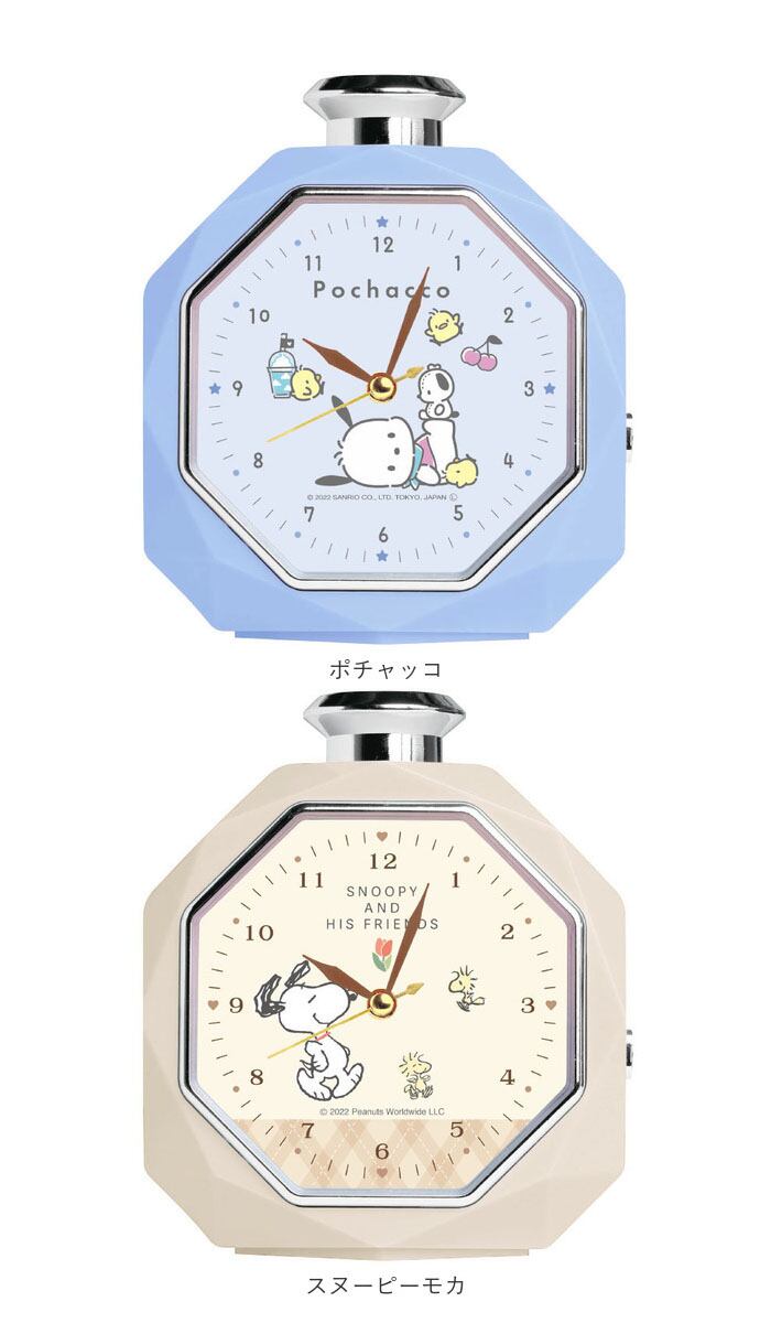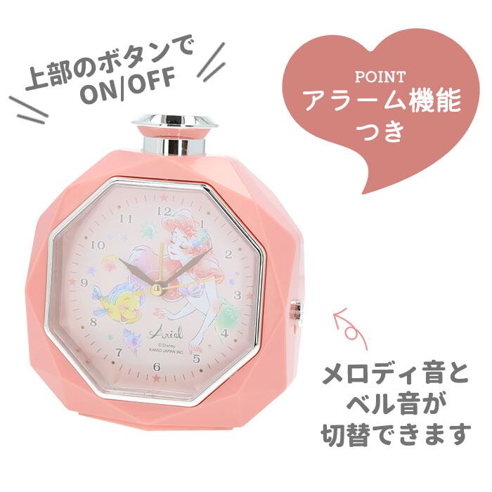 ・ダイヤモンドカットを施したボディに、八角形に切り抜かれた文字盤の窓がファンシーな目覚ましクロック。