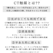 ・CT触媒とは、「酸化還元」という化学反応により、悪臭の元や付着した細菌を分解、空気をキレイにする技術。「抗菌」「防汚」「消臭」の3つの効果でお部屋をクリーンUP!