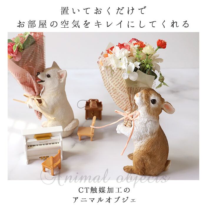 ・かわいい動物のマスコットが花束を抱えた愛くるしいデザイン。置いておくだけで簡単にお部屋の空気をキレイにしてくれる「CT触媒 ミニョンブーケ」が登場。