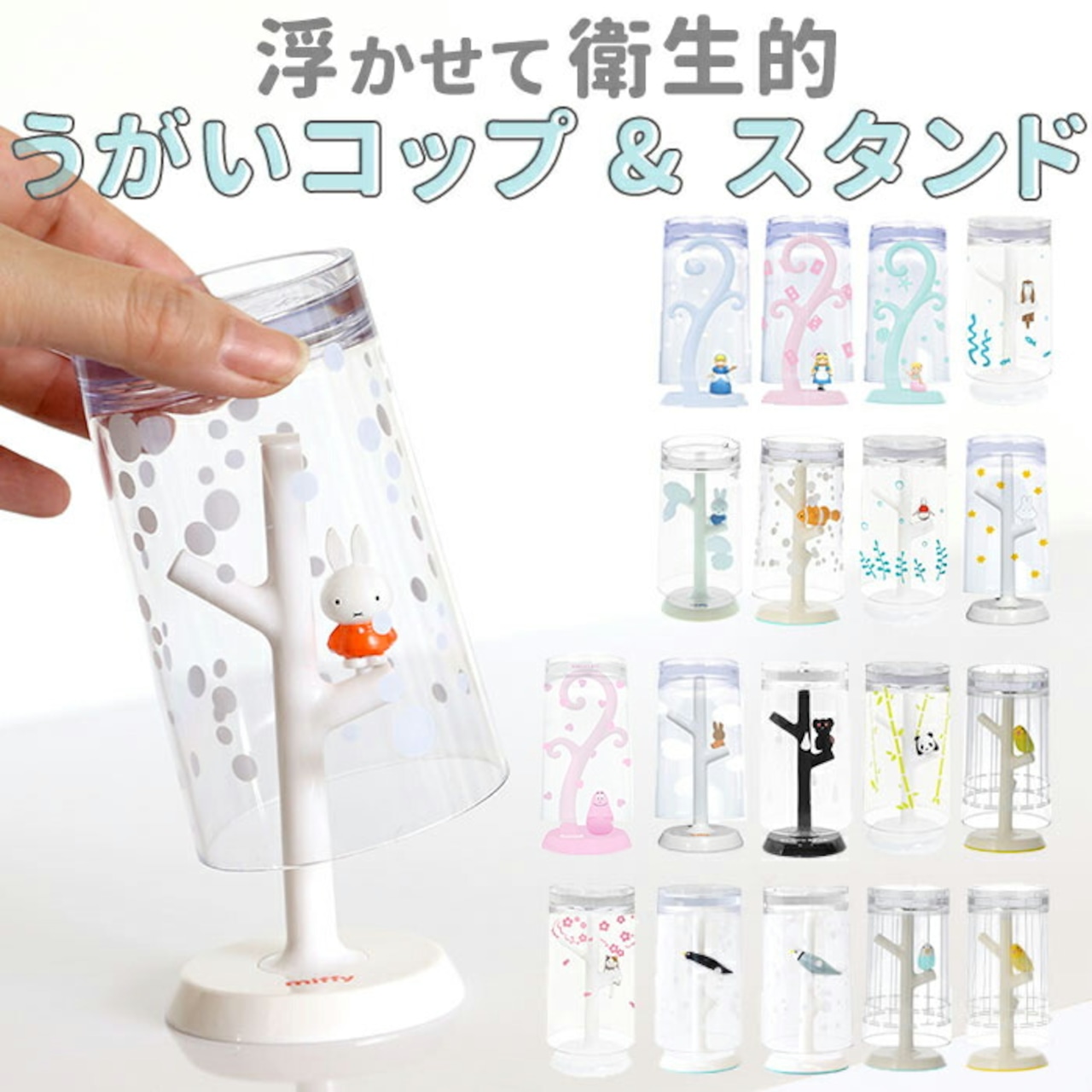 ・シンプルでおしゃれなうがい用コップとスタンドのセット。インテリアとして合わせやすい。