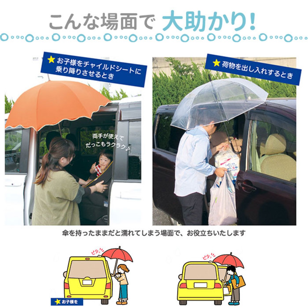 ※本品で傘を固定したまま車から離れないでください。