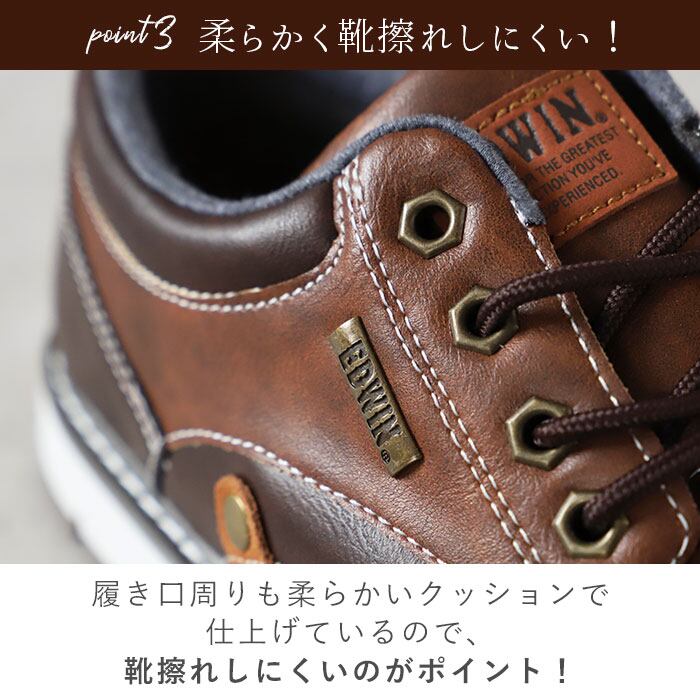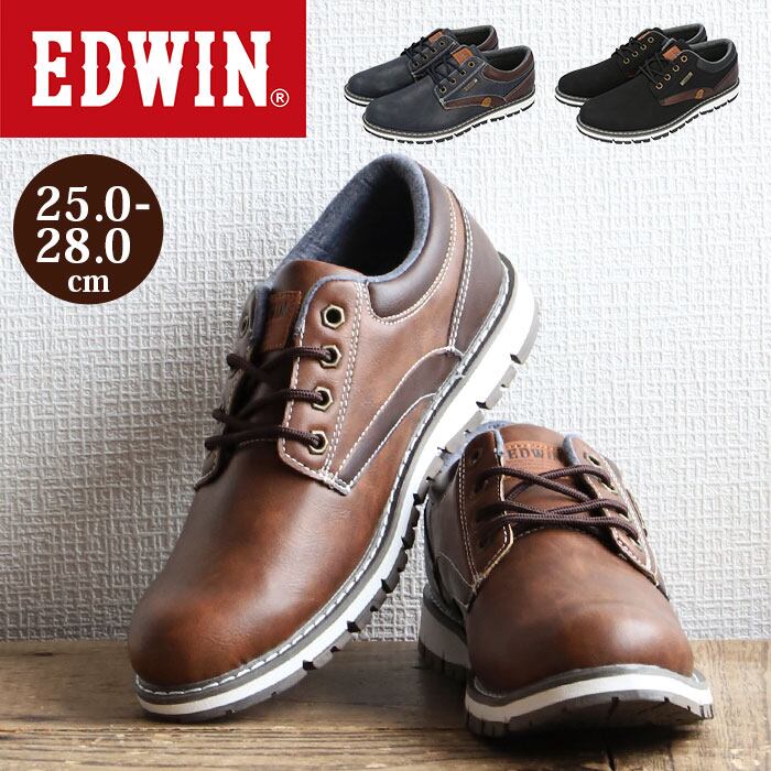 エドウィン スニーカー 通販 edwin 靴 防水 シューズ メンズ カジュアル ローカット 防滑シューズ 紳士靴 ブラウン ブラック ネイビー レザー 調 おしゃれ 25 26 27 28 cm 敬老の日 ギフト プレゼント