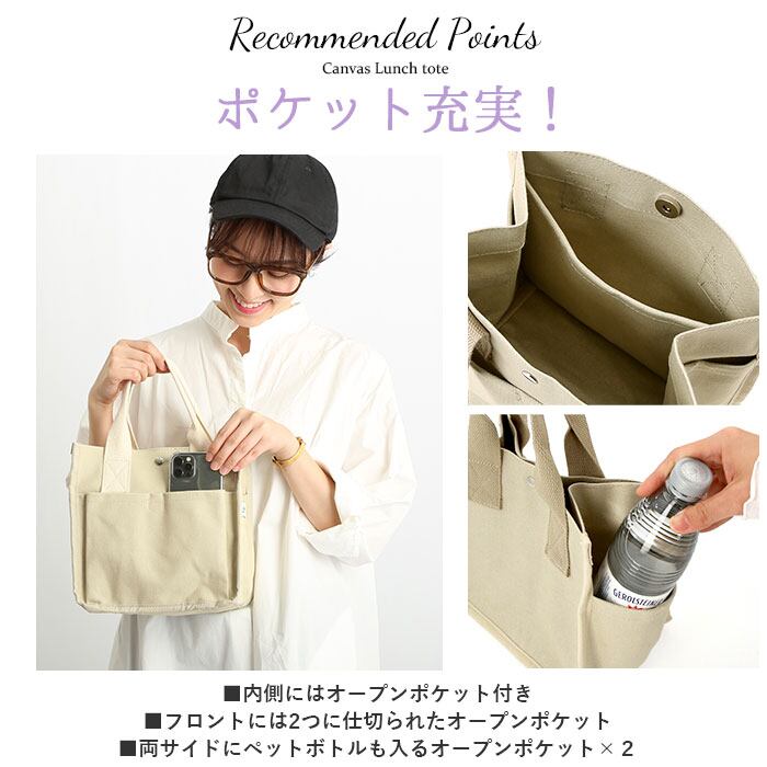 ・無地のシンプルなデザインなので、ランチバッグとしてだけでなく、デイリー使いのミニトート・サブバッグとしても活躍。