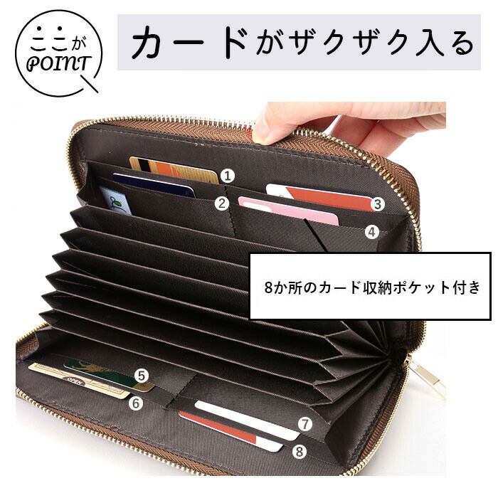 ・合計8か所のフリースペース以外にも、8か所のカード収納ポケット付き。スリムに収納できるのにたっぷり入って使いやすい!