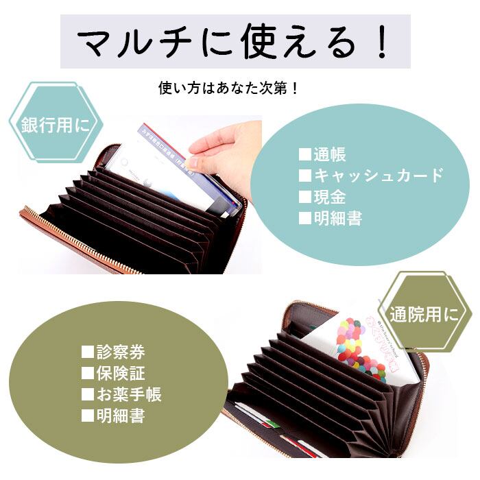 ジャバラ マルチケース 通帳 通販 通帳ケース パスポート スキミング防止 グッズ 母子手帳ケース レディース メンズ じゃばら 大容量 おしゃれ お薬手帳 おくすり手帳 シンプル ラウンドファスナー PU レザー 合皮 無地 フェイク レザー