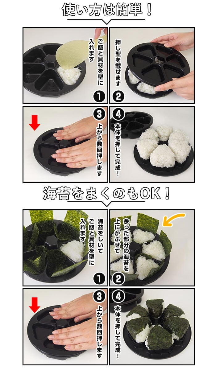 ・最大6個のおにぎりが同時に作れる!具材を変えて作ると、6種の味を一気に作ることも可能。